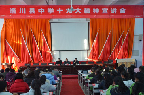 12月20日,洛川县委十九大精神宣讲团深入洛川中学进行宣讲,宣讲报告会在洛川县中学逸夫楼“学思堂”举行。县委宣讲团成员张怀清同志做了《深入学习宣传贯彻党的十九大精神,建设美丽、智慧、人文、奋进新洛中》的主题宣讲。洛川中学校委会成员、全体教师党员、教职员工、学生党员、学生入党积极分子、学生干部300多人参加了会议。会议由洛川中学校长吴平同志主持。